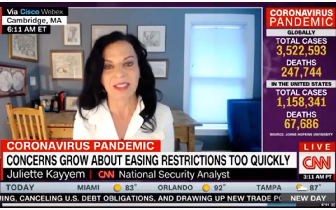 Juliette Kayyem – Coronavirus Pandemic CNN by Natalia | Jun 12, 2020 Juliette Kayyem is a national security, intelligence and terrorism analyst for CNN